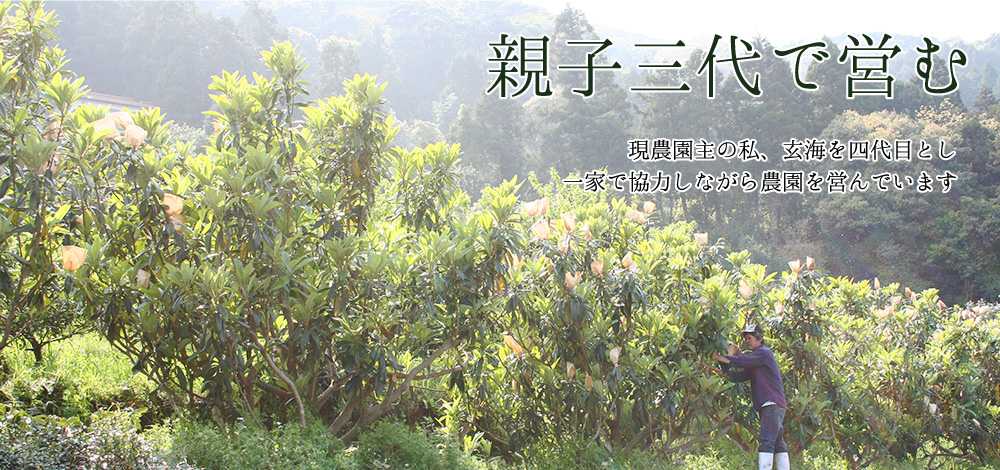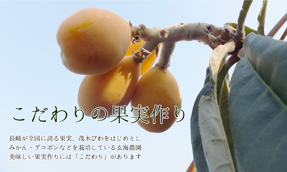 玄海農園はこの地で今や長崎県を代表とする特産品として全国に知られる茂木びわをはじめとし、みかんやデコポンの栽培を行っています。